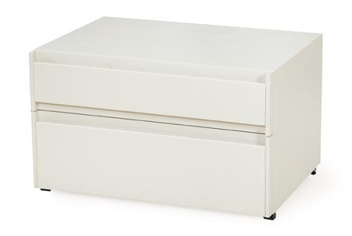 Cajones con apertura o tirador, acabado en laca brillo.