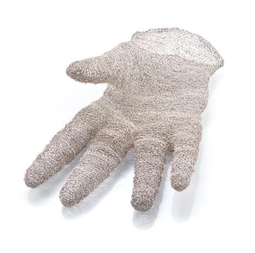 Guante realizado con técnicas tradicionales de orfebrería en frío, con hilo de plata de 925 tejido a crochet. Pieza Unica.