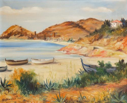 Lote 310: RAFAEL SARABIA-BENITEZ - Paisaje con barcas