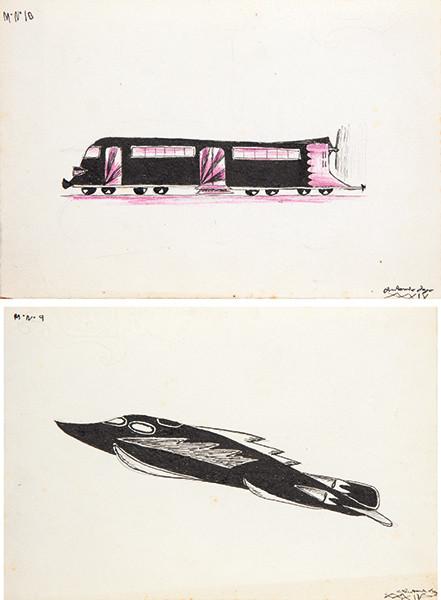 Tinta y lápiz de color sobre papel (dos dibujos)