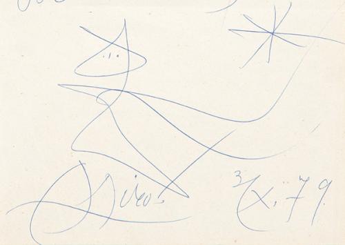 Lote 374: JOAN MIRÓ - Dedicatoria y dibujo
