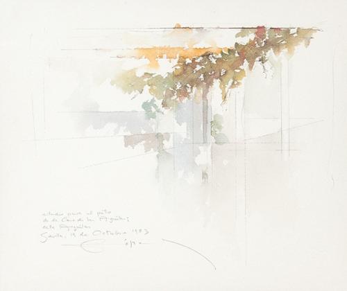 Lote 385: FERNANDO ZÓBEL - Estudio para el patio de la Casa de las Águilas; Calle Águilas