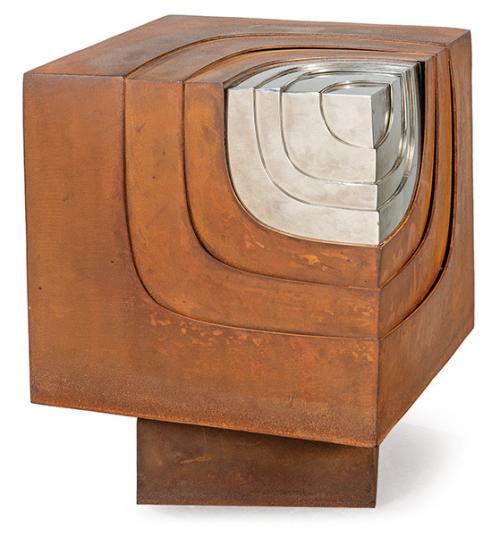 Escultura giratoria en acero corten y acero pulido