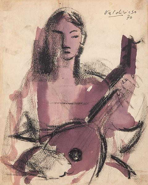 Lote 502: ANTONIO VALDIVIESO - Mujer y guitarra