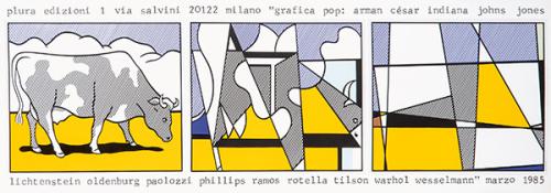 Realizado como cartel de la exposición colectiva "Gráfica Pop" en la Galleria Plura de Milán, en marzo de 1985